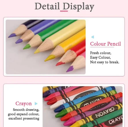 • 🎨 180 Art Supplies Included – Markers, crayons, colored pencils, watercolor cakes, and more.