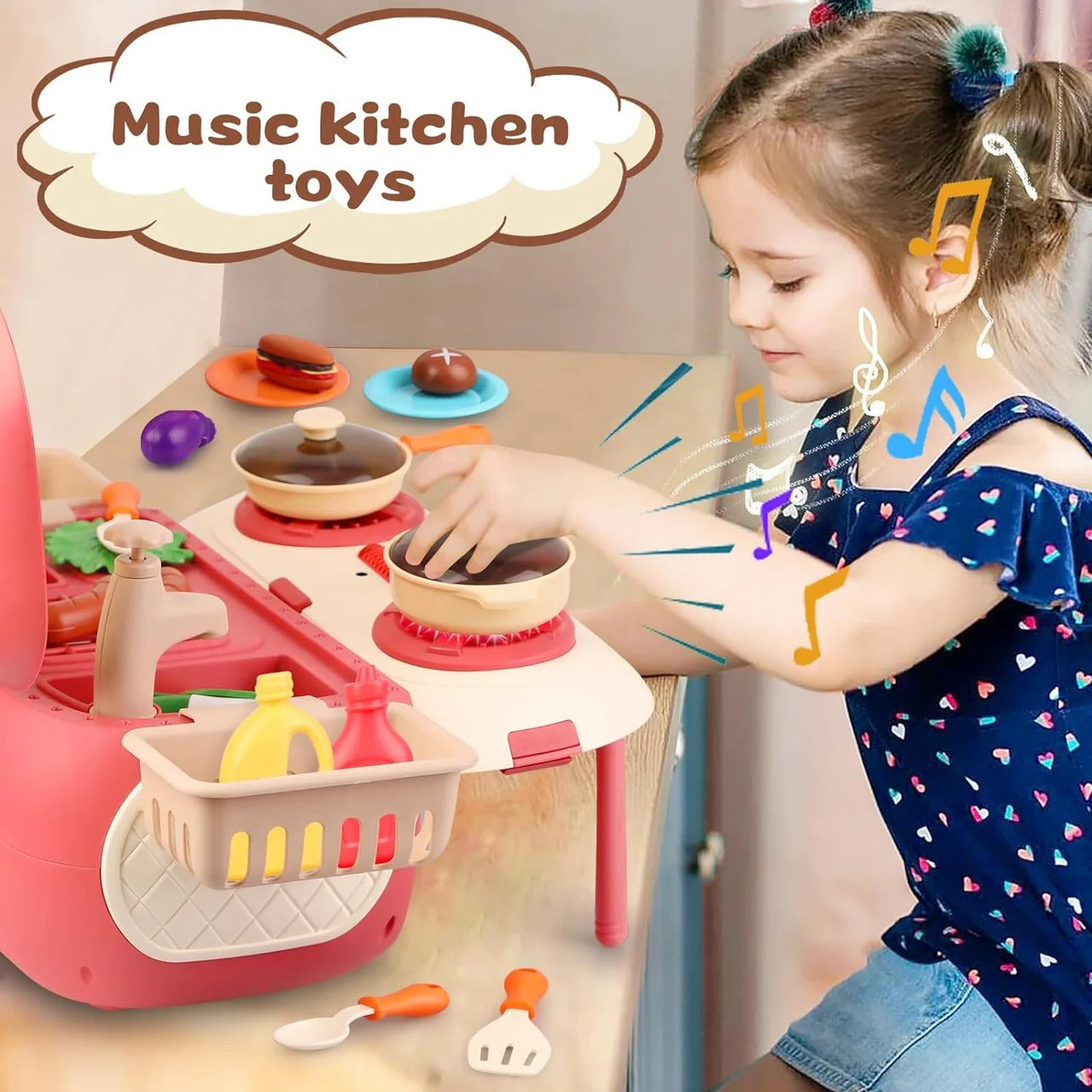 • 🎵 2-in-1 Design – Stereo tape recorder-style kitchen for cooking & storage.