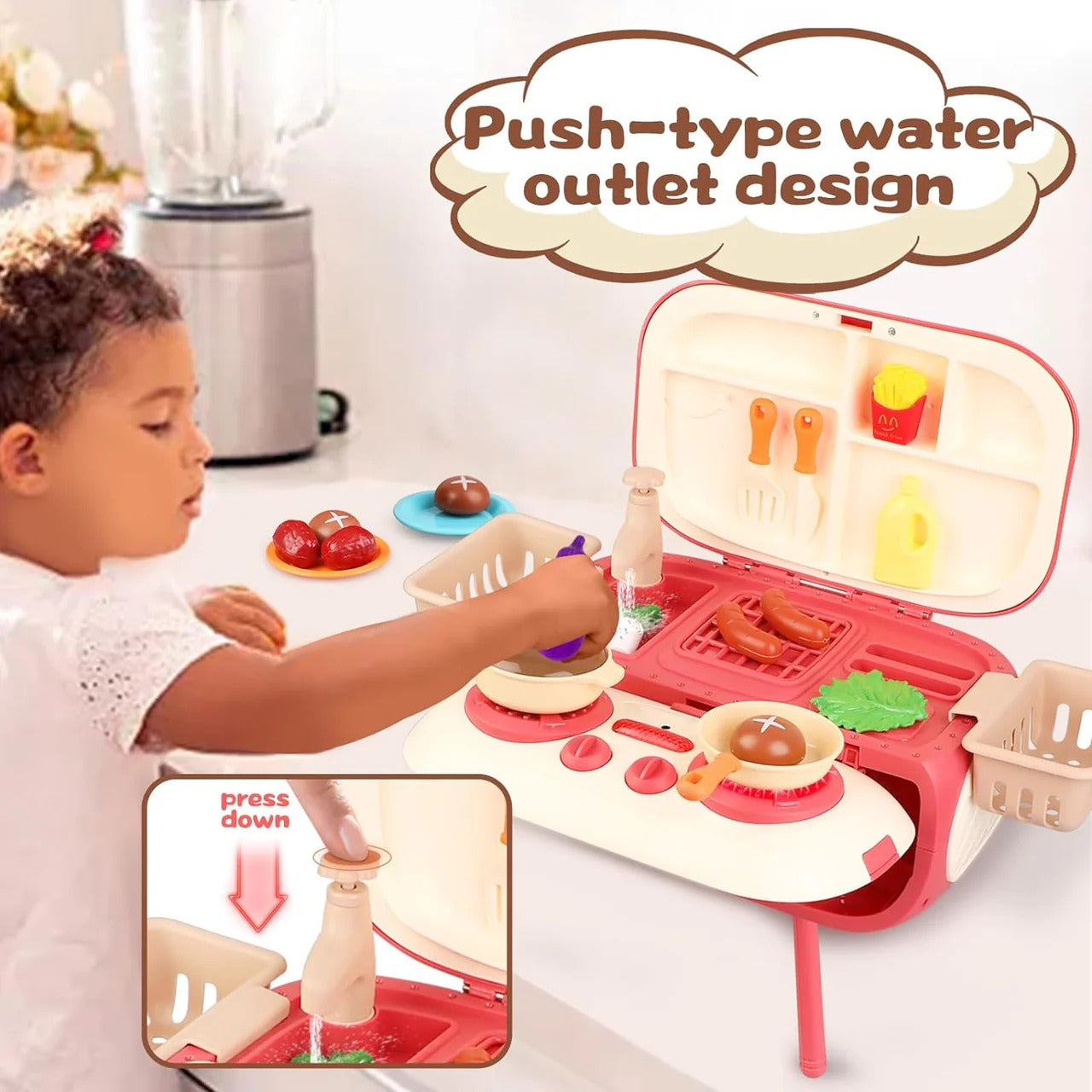 • 💧 Working Water Tap – Circulating water system for realistic dishwashing play.