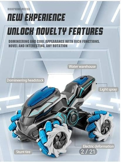 Get ready for action with the 360° RC Stunt Motorcycle & Car, a 2‑in‑1 transforming remote control toy made from durable alloy material. With the press of a button, it shifts between a sleek car and a powerful motorcycle, performing thrilling 360° spins, flips, and drifting maneuvers. Equipped with vibrant LED lights, realistic sound effects, and smoke simulation, this stunt vehicle creates an immersive playtime experience while its 2.4GHz remote ensures smooth, stable, and interference‑free control—perfect for kids who love speed, stunts, and non‑stop excitement.